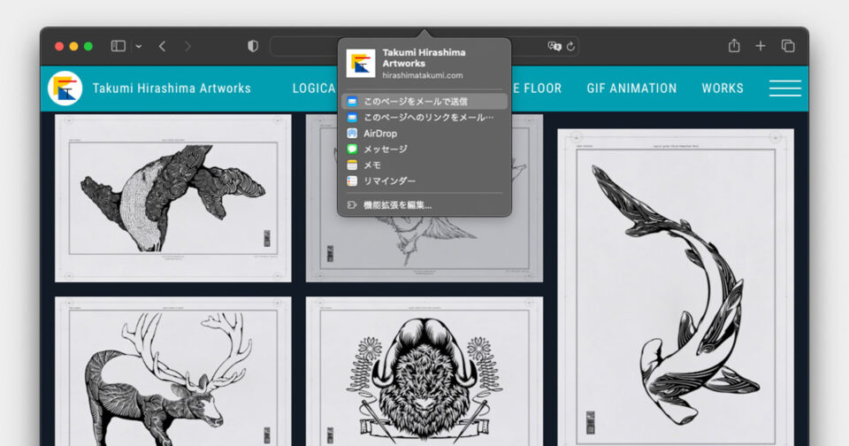 HTMLにアクセスしてページが表示されたら、Safari のメニューバー「ファイル」から「共有」を選択します。